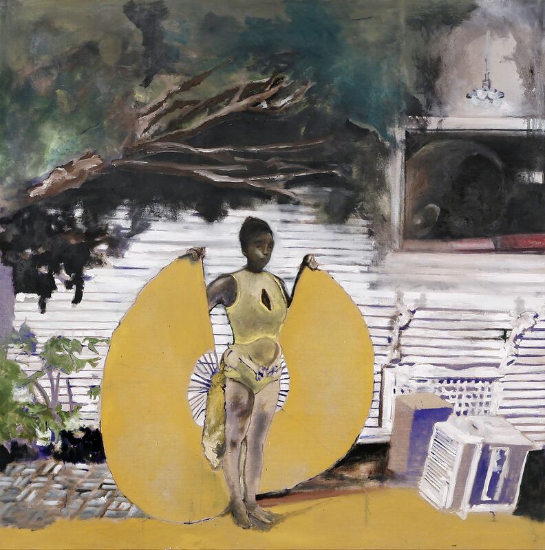 Noah Daviss figurative paintings often based on vintage photographs with an art-historical bent and an Expressionistic rendering spark a dialogue between modernist aesthetics and African American history. The Los Angeles based painter is known for his large-scale figurative canvases. Davis explains The paintings represent the potential of art and performance in a low income community.